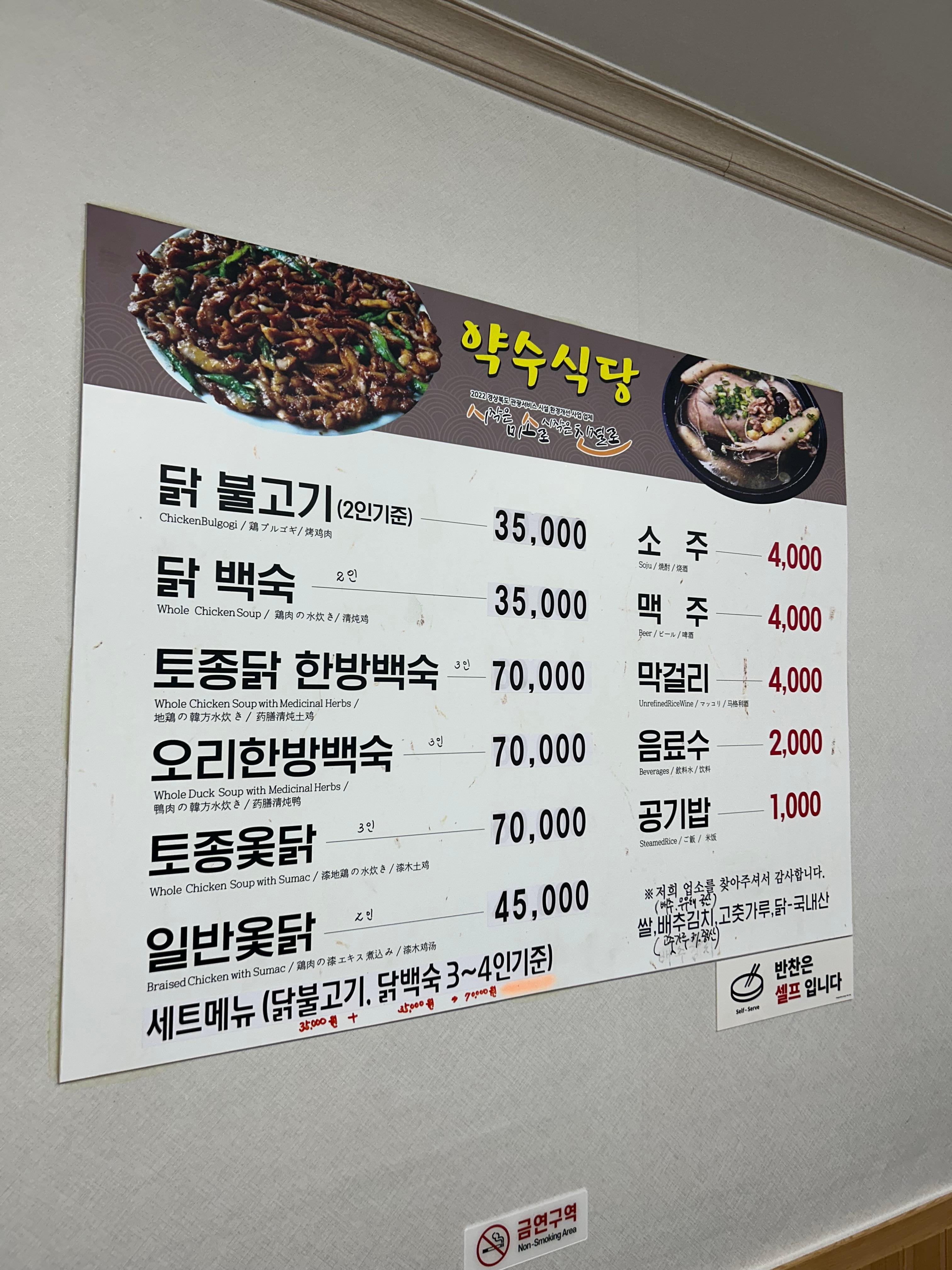 | 녹두죽 (추가) | 방문 시 확인 | 백숙 후 추가 가능 |